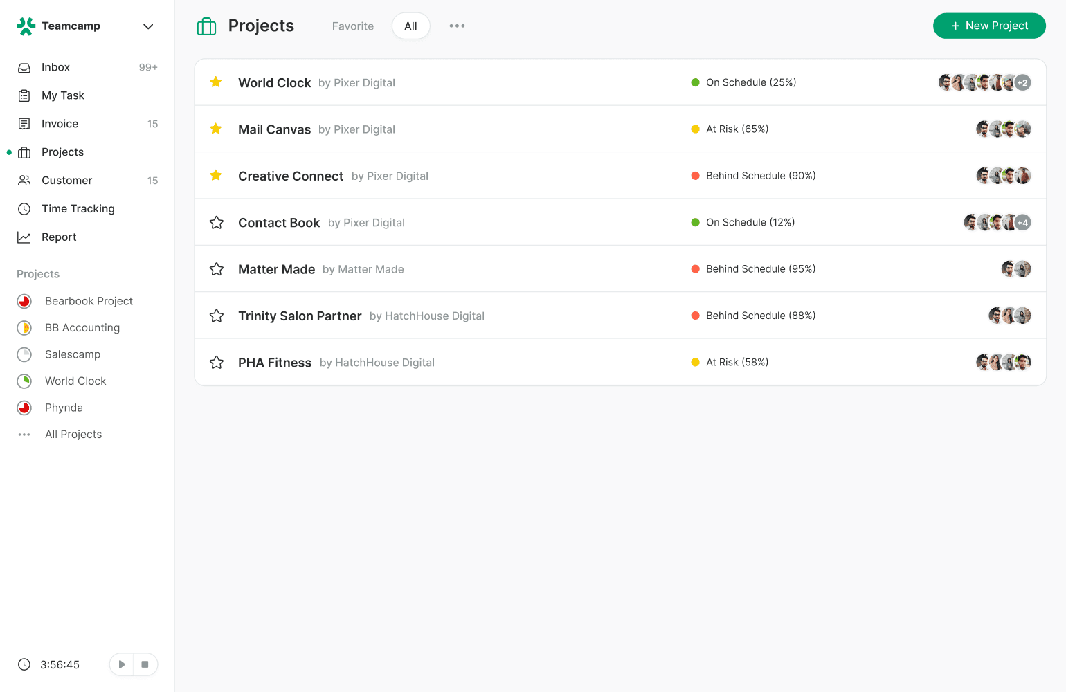 Under the Project name, you can see the progress bar. Here, you can also see the completion percentage and track if the project is on schedule.