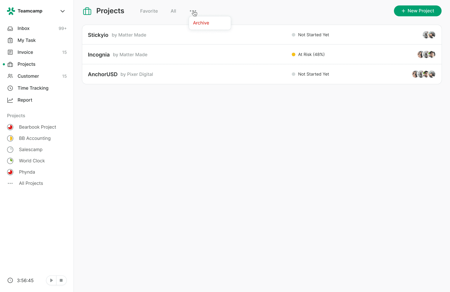 Archiving keeps your workspace organized and makes it easier to focus on current projects. To archive a project: