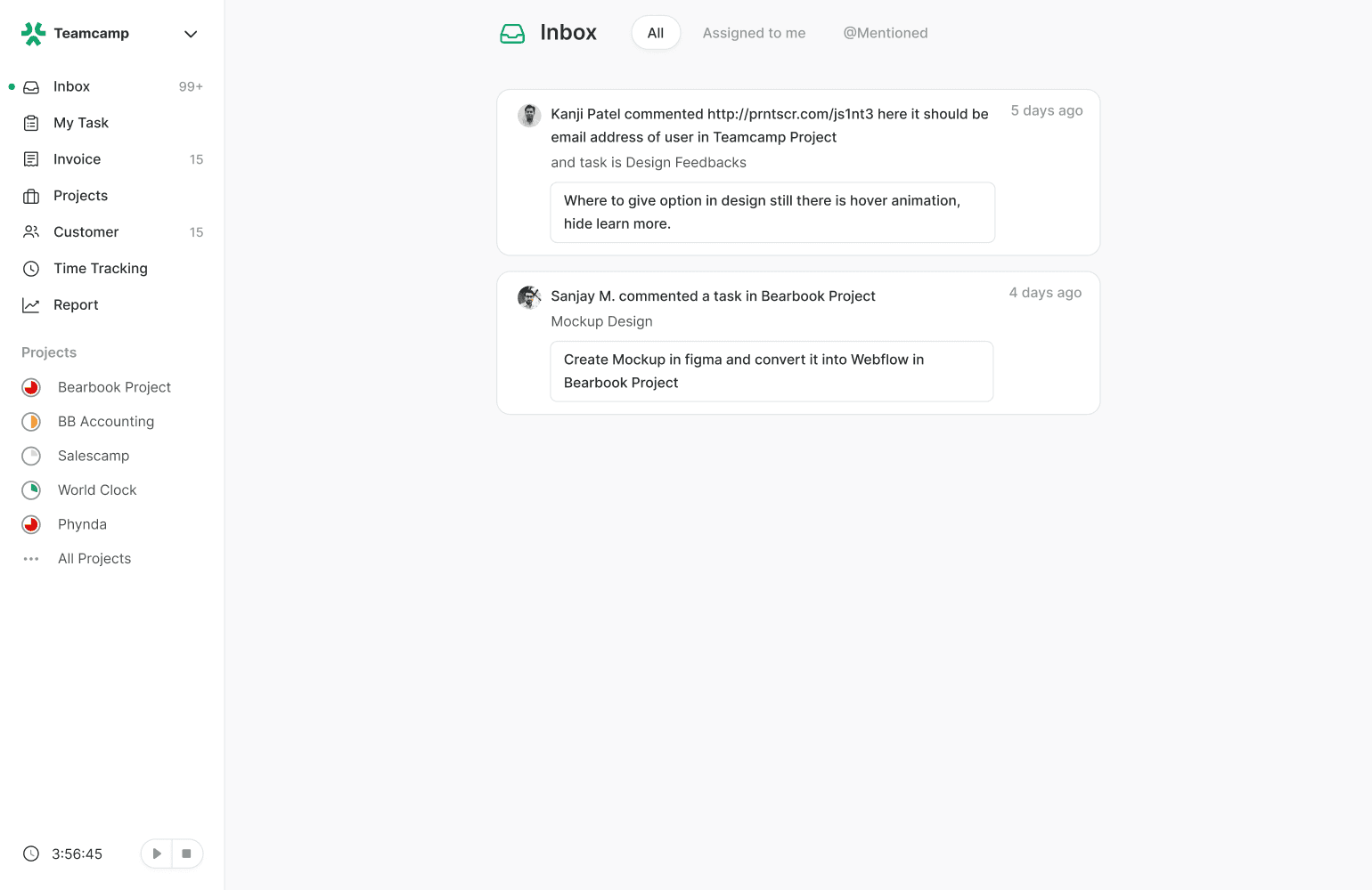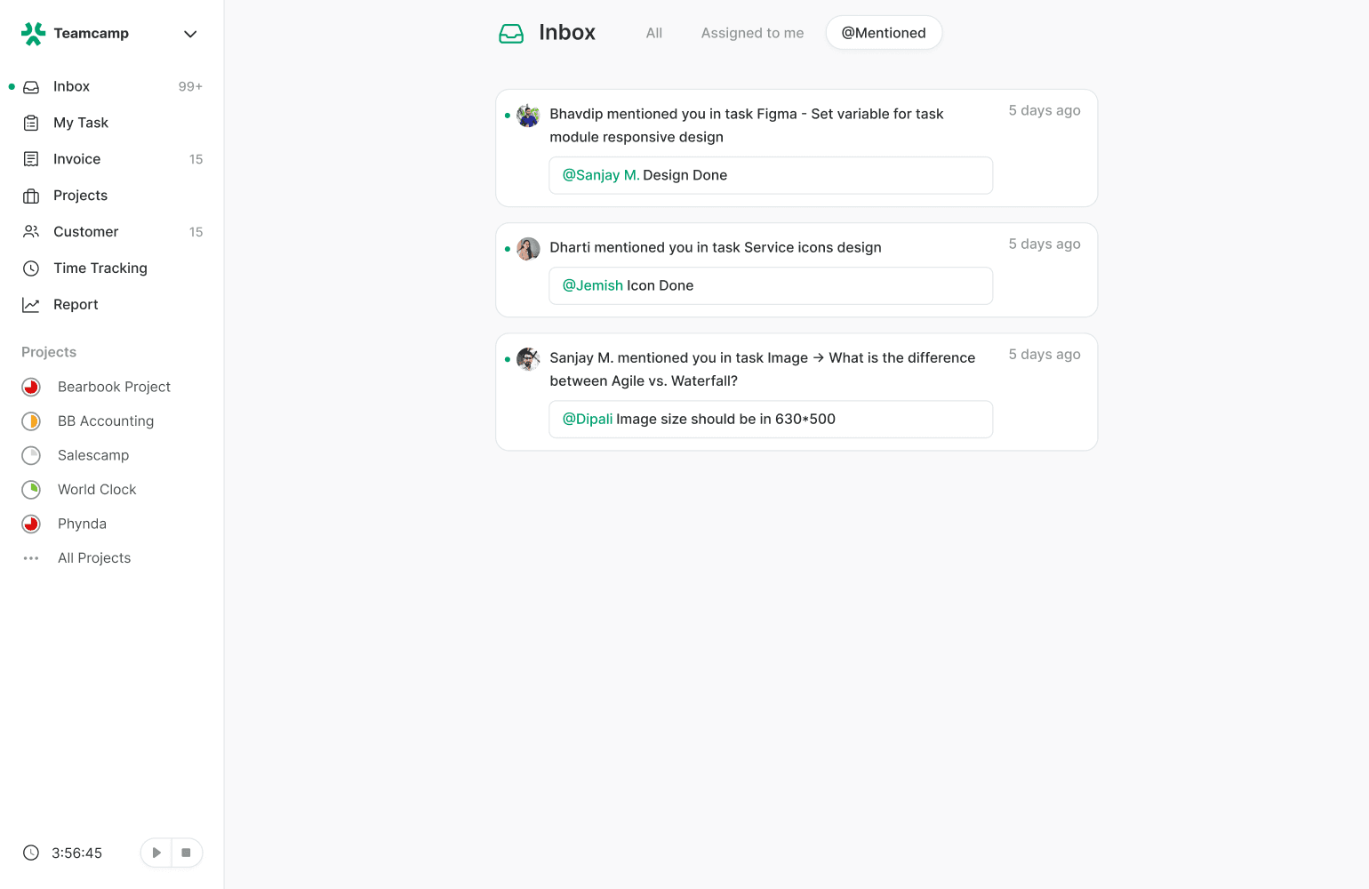 If someone mentions your username in a task or comment, you'll receive a notification in the "@Mentions" section. This ensures that you're aware of any discussions or tasks that specifically involve you.